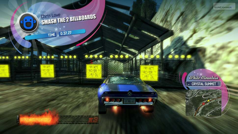 Then the games begin: landing difficult jumps, dodging traffic, smashing billboards - it's all here, and it's pretty good fun. Also impressive is the way that key points of Paradise City are expertly utilised for the challenges; if you're a newcomer to the game, it's a great way to get acquainted with the local landmarks.