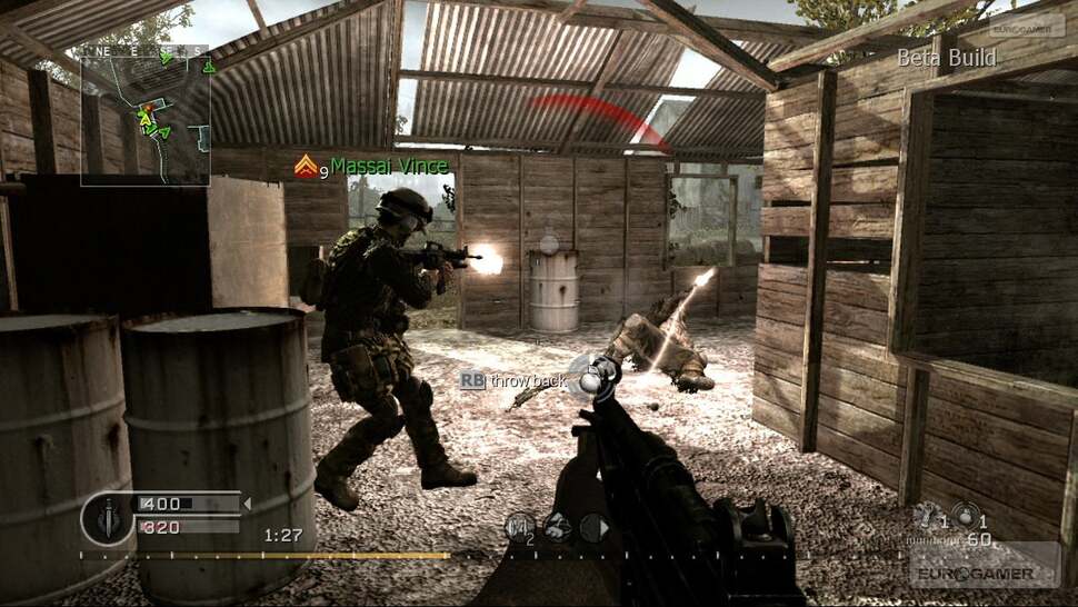 Getting into the game is simplicity itself though, thanks to the matchmaking system which plays out in a very similar manner to Halo 3's. Just choose the game type you want (Deathmatch, Team Deathmatch, Tactical and Objective) and the code takes care of all the rest for you - usually without the interminable delay that plagued the Halo 3 beta version. Quick and easy for sure, but I hope the final game allows you some control over the search parameters.