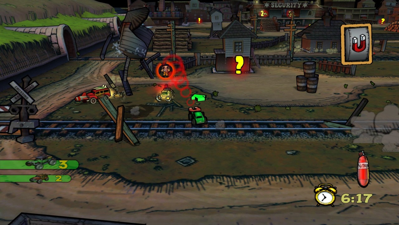 More than that though is the fact that Calling All Cars! can swiftly descend into a series of multiple bumper car-style melees, with little reliance on skill required to emerge victorious from the scuffle. Too many journeys back to the clink are essentially one-note, repetitive ramming contests that effectively randomise who the eventual winner of the round will be. Short of an extremely well-timed nitro boost it's difficult to break out of this cycle once it has begun and you can't help but think that it wouldn't be happening with more balanced gameplay.
