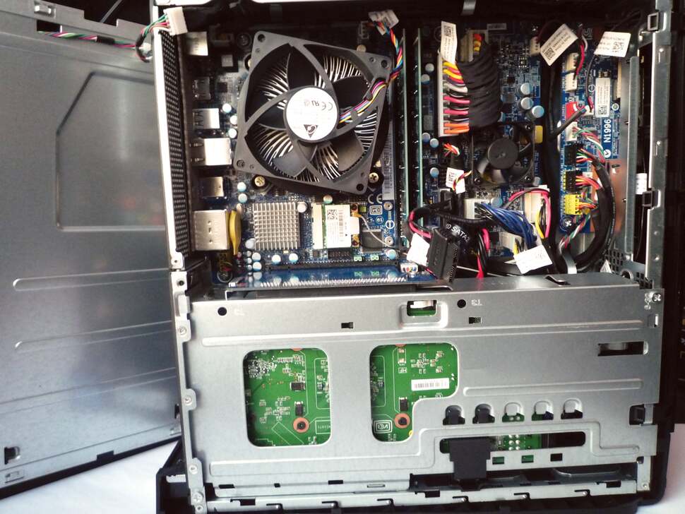 In particular, the big breakthrough for the X51 is the use of a PCIe x 16 riser card, which makes room for the use of full-sized GTX555 by turning it at a right-angle, and allowing it to sit in parallel with the length of the motherboard underneath. Other SFF PCs have to compromise in this regard by either seating a half-width graphics card protruding directly upwards from the motherboard, opting for an integrated graphics solution, or otherwise abandoning the form factor altogether in favour of something akin to the wider, box-shaped Shuttle PCs.