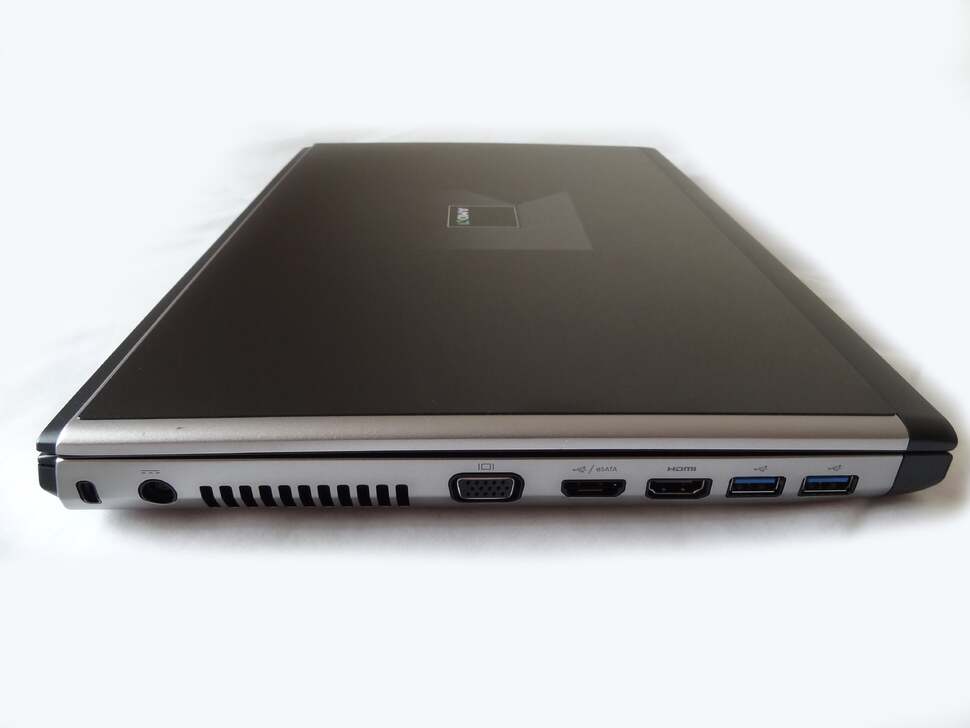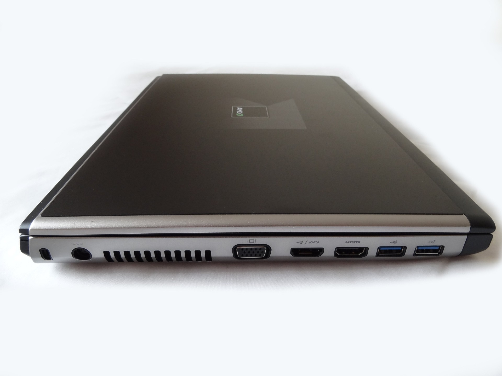 The keyboard offers a satisfying level of give to each tap, and each press results in a light click. Unlike some larger laptops, there's nothing in the way of flex when the centre is pressured. Below the board is a smoothed trackpad which feels proportionately sized for the device, while above it is a touch-sensitive media bar with glowing LEDs behind each button to show when volume is being raised, lowered, or muted. In terms of raw connectivity, we turn to the edges of the device to find two USB 3.0 slots, one for USB 2.0, outputs for both VGA and HDMI, one eSATA connector, an Ethernet port, and a BD-RW drive. There are also standard 3.5mm headphone and microphone jacks at the front, centimetres besides a toggle for WiFi.