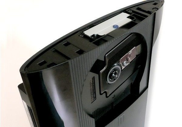 Construction of the CECH-4000 model is clearly somewhat simpler compared to its predecessors, and the quality of the materials used feels like a bit of a step down compared to the current PS3 Slim. There's a mixture of fingerprint-attracting glossy plastics on the oval top, while the ridged sliding drive bay cover is matte in nature and somewhat cheap-looking for a PlayStation product. The aesthetic of the PS3 has been defined by its sweeping curves and quality feel - this 'corrugated' lid arrangement doesn't just look a little cheap, it just feels out of place compared to the premium finish previous PS3 models have enjoyed.