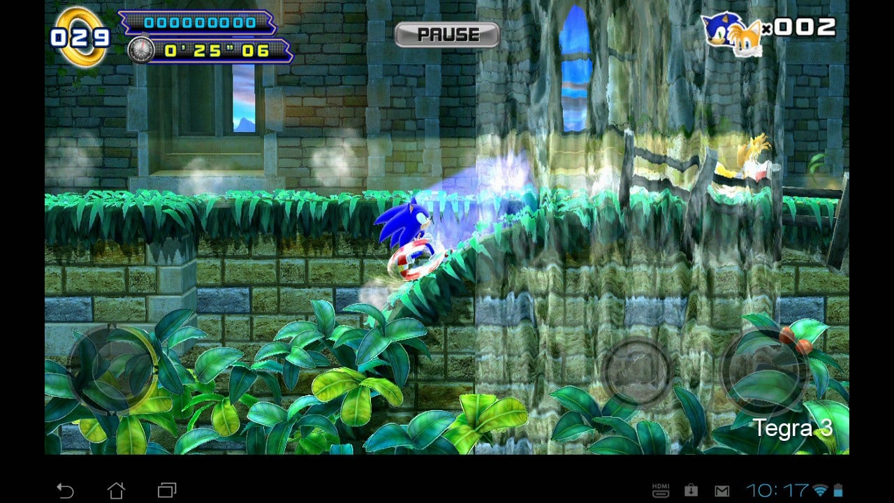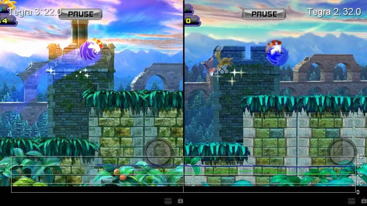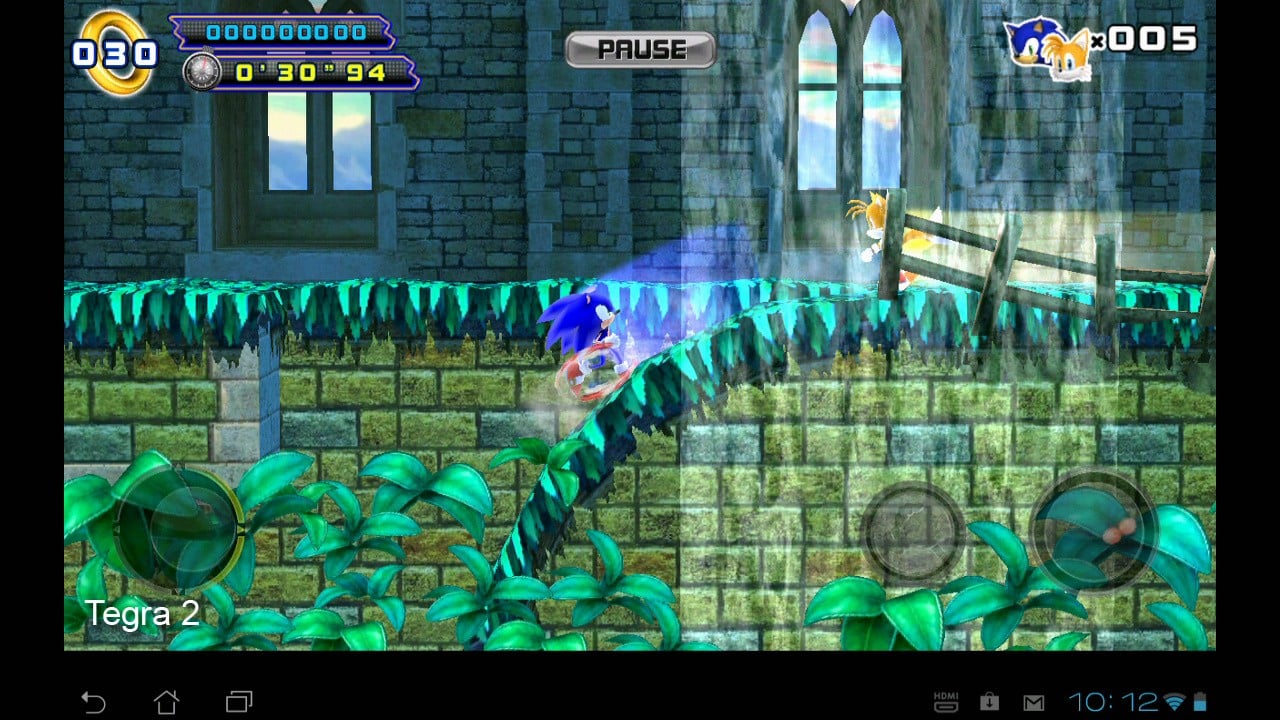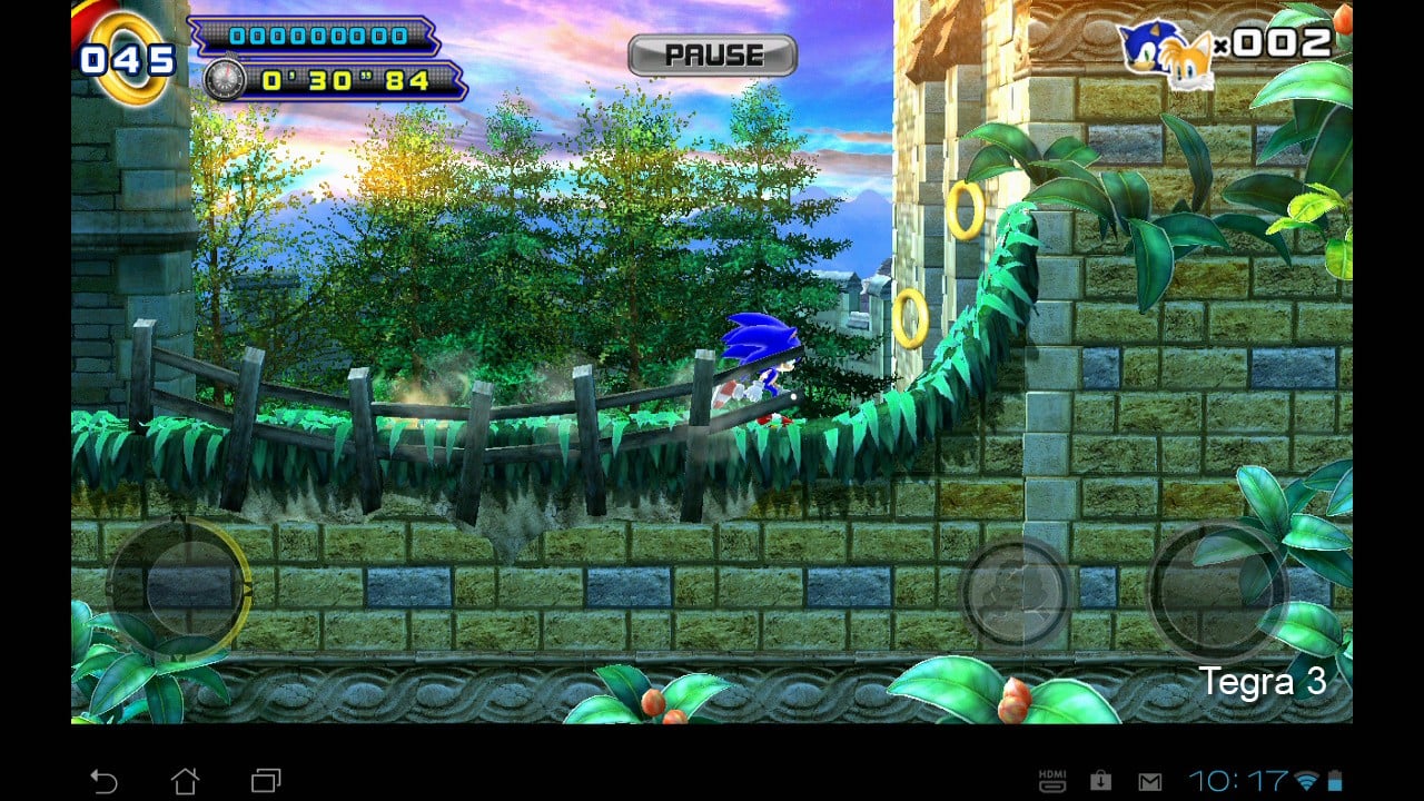 Checking out Sonic on the Transformer Prime, we still see lots of stutter and, while average frame-rates are higher, when the screen fills with transparent alpha effects then performance drops to the same level we see with the TF300. Control feels more responsive in the slower sections of the game on the Prime, and the game is slightly more playable as a result.