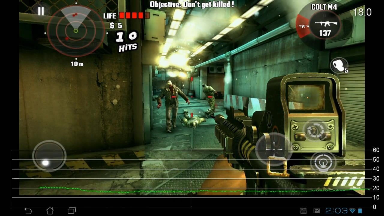 This is not to say that analysing the performance of Tegra 3 tablets is impossible with HDMI off the table - it just becomes a lot more difficult. We can point a high-speed camera at the screen and record it at 60 frames per second and, by manually counting frames, we get some idea of the overall performance level - and by extension we can also see just how much HDMI mirroring can hit frame-rate. Grand Theft Auto 3, for example, regularly hits 15 frames per second on HDMI output, when the tablet screen is running at twice the frame-rate - or faster - once decoupled from the display. Dead Trigger can also hit a low of 15FPS on HDMI displays, even though it actually spends much of the time running north of 30FPS, even occasionally hitting 60FPS in places when running on the tablet screen alone.