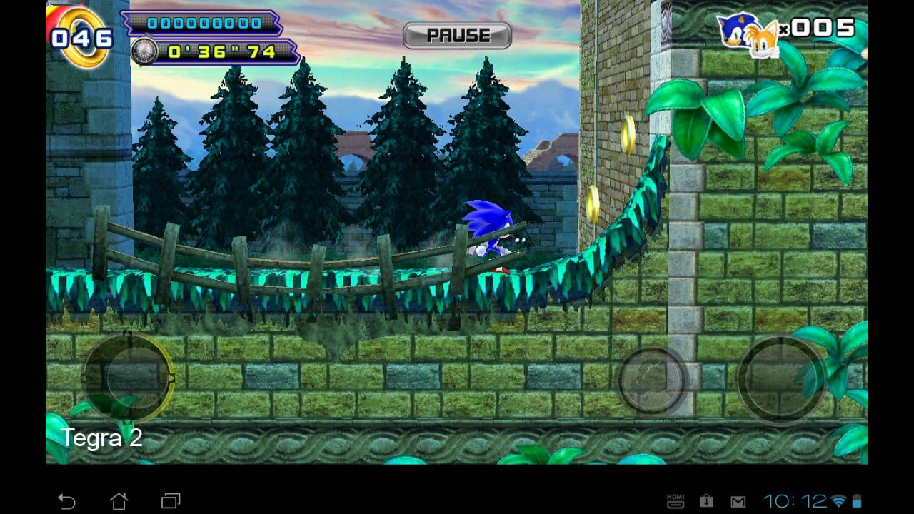 The standard version of Sonic 4 Episode 2 that is available across both Android and iOS services does a pretty decent job of emulating its console counterpart; the gameplay is naturally a match and visually all of the core details have been transplanted across, although the bulk of the artwork has been simplified in order to work across a varied range of smartphones and tablets. Despite there being a few dips in performance in areas with more complex scenery, the Nexus 7 and TF300 have no problems regularly hitting the target 30FPS update when running the game without too many dips in performance, and as a result the game feels relatively responsive to play.
