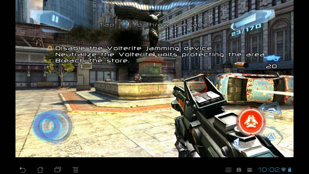 On the other hand, there's a real sense that NOVA 3's lofty aspirations to deliver a low-budget Crysis 2 clone to mobile hardware is just a little too much for the Nexus 7 to handle. Performance is truly awful during fire-fights and when there multiple enemies on screen to the point where the game is barely playable, if at all - we're looking at a consistent sub-20FPS, which commonly drops to 15FPS and sometimes even lower in heated encounters. NVIDIA tells us it is working with GameLoft to better optimise NOVA 3 for the Tegra hardware but as it stands right now it's nowhere near as good as same game running on iPad 2. Indeed, despite losing some effects such as depth of field, the new iPad version runs at retina resolution and still operates at a far smoother frame-rate than the same game running on the Nexus 7. Also disappointing is that the Android version loses all the extra effects work we see on the iPad 2 version.