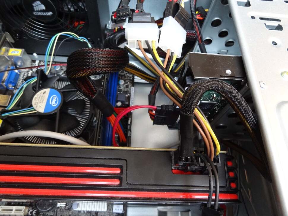 Due to the higher advertised TDP of the card - going from 108 watts on the HD 6770 to 151 watts on the upgrade- the HD 6870 requires two 6-pin PCIe connectors as opposed to just the one. The Corsair 430W power supply we're on our build using can only supply one of these connectors, however, meaning special arrangements need to be made for the other. Many card manufacturers pre-empt this need by boxing in a molex-to-6-pin PCIe converter cable- often requiring two molex connectors to provide the necessary power. Luckily, our PSU has three of these at the ready; though one is already used to charge the rear fan, the rest are fair game for GPU duties.