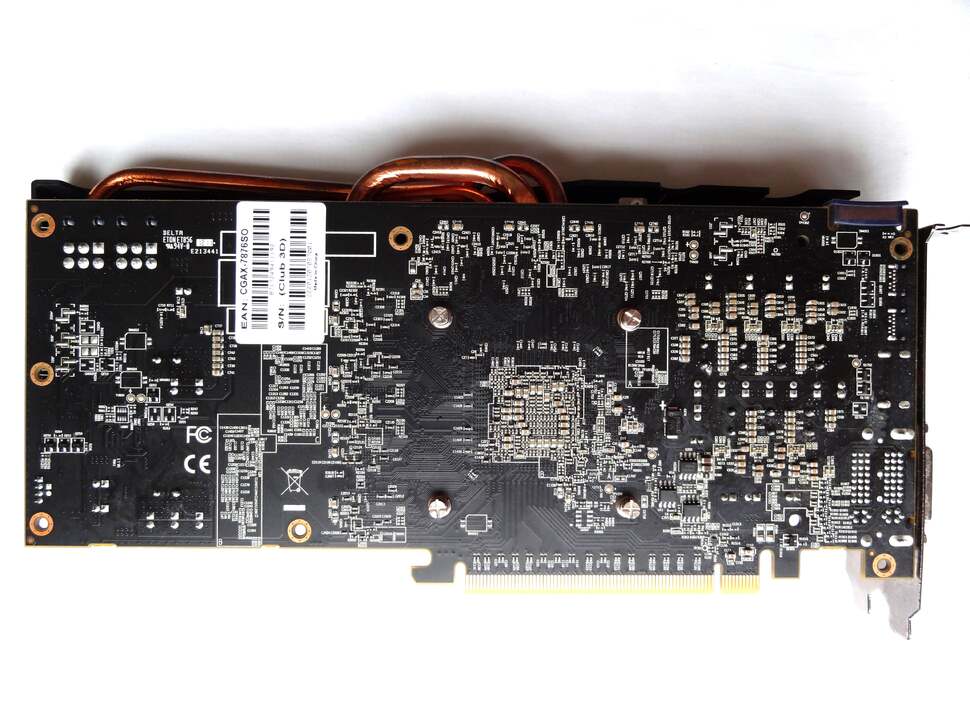 Next, we look at the physical aspects of the card . This edition of the 7870 counts in at 268mm in length - just one millimetre longer than MSI's 660 Ti Power Edition. On top, we see three intertwined copper pipes bending out from different sections of its aluminum fin array. A lion's share of the ventilation to this heatsink is handled by the twin CoolStream fans at the front, though the open-shell design also permits air to circulate from around the PC to the top and bottom of the card. In practice, this doesn't amount to any more noise than the HD 7850, and avoids the rising sound signature of the previous generation's 6870.