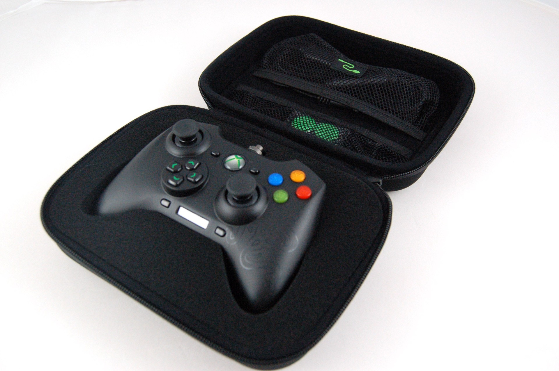 Opening up the package offers up some pleasant surprises. The pad is found within a robust fabric container, protected from harsh outside forces by a flush foam insert with netted pockets for the accessories. Prising the pad free from its deluxe receptacle, we find the controller itself to be a class apart from the standard 360 effort. A rubberised skin offers a reassuring non-slip surface, the high-quality impact of the materials only slightly diminished by the rather cheap-looking embossed snake motifs on the bottom right. On the rear of the pad we find a din-style interface into which a 3m braided cable is inserted, the other end finding a home on the USB port of the console.