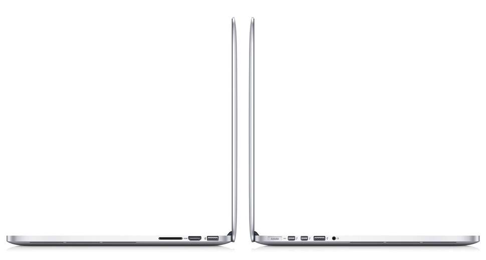 - MagSafe 2 power port, 2x Thunderbolt, 2x USB 3.0, HDMI, Headphone, SDXC card slot