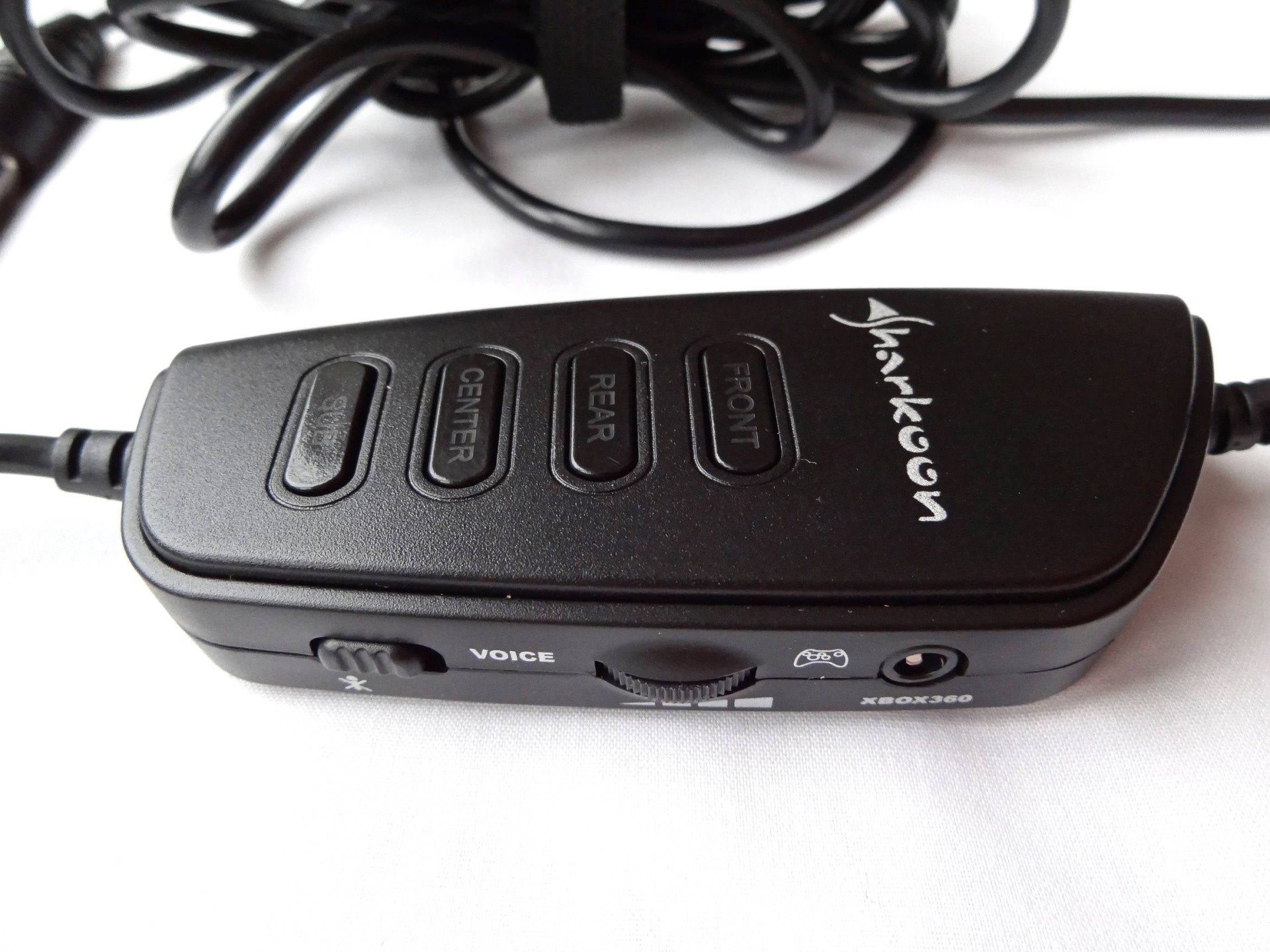The cheapest of the quartet is Sharkoon's X-tatic Digital, unique for its offering of the aforementioned hardware-based surround sound. Specifically, this is achieved through the integration of eight speakers in total, where each earpiece contains a 30mm front speaker, a 27mm rear speaker, a 30mm centre speaker, and a 40mm subwoofer to supply the bass. To drive all of this, the big sacrifice being made here is that it must be wired at all times, via a 9-pin connector to the supplied sound control unit.