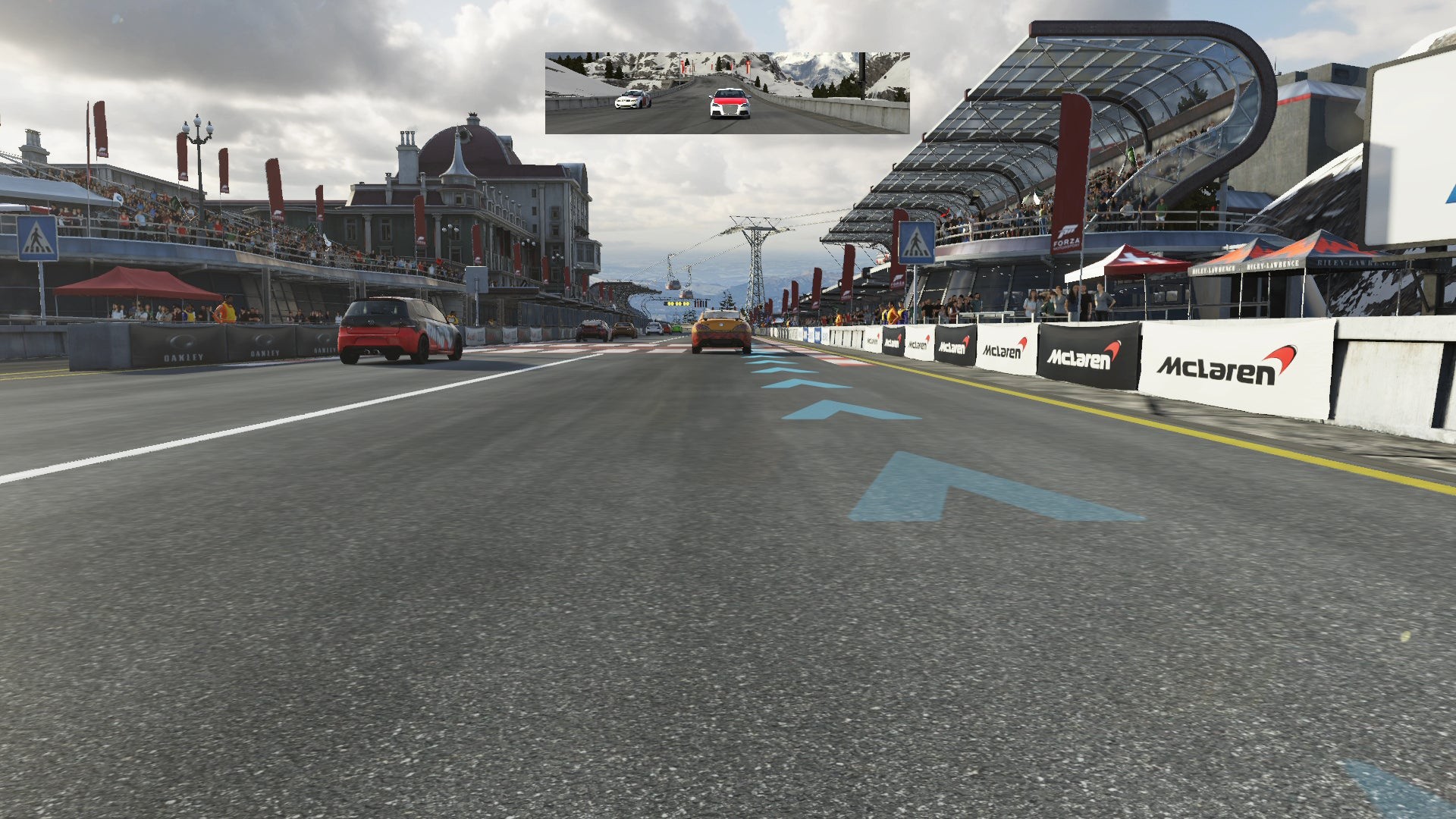 Much of this has a knock-on-effect with cockpit reflections too, where the front window now mirrors your dashboard and hand motions under the right lighting conditions. One camera view switch away is the bonnet perspective, where all world details are also kept fully intact - even down to the UI elements hovering over AI cars. And as usual for the series, these reflective surfaces operate at half the game's typical refresh when under load, giving us a 30fps update that matches the rear and side-view mirrors.