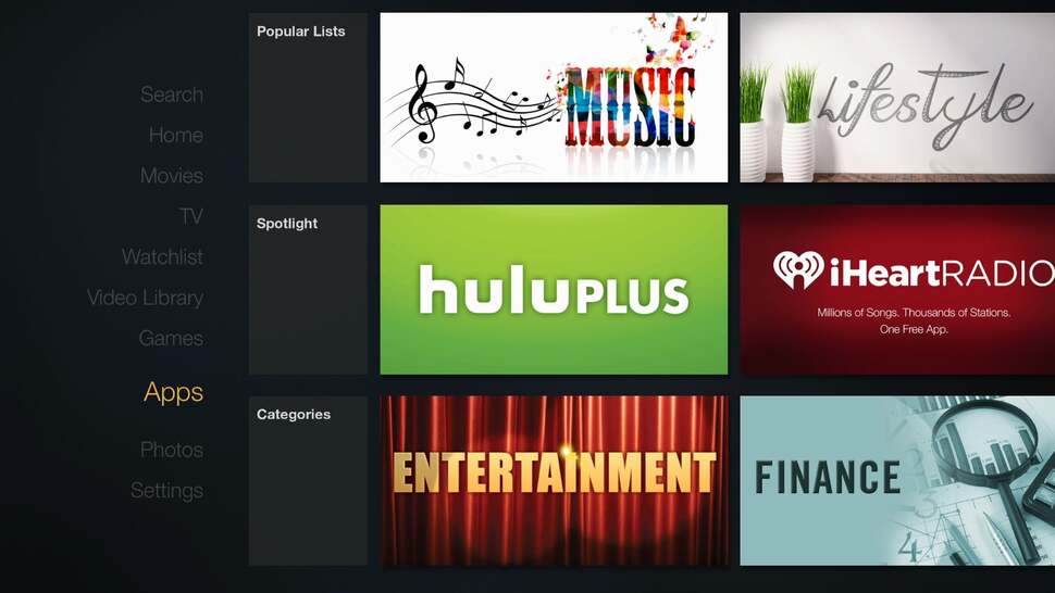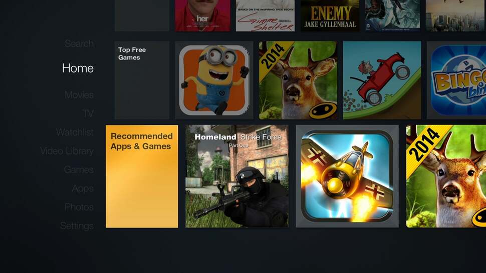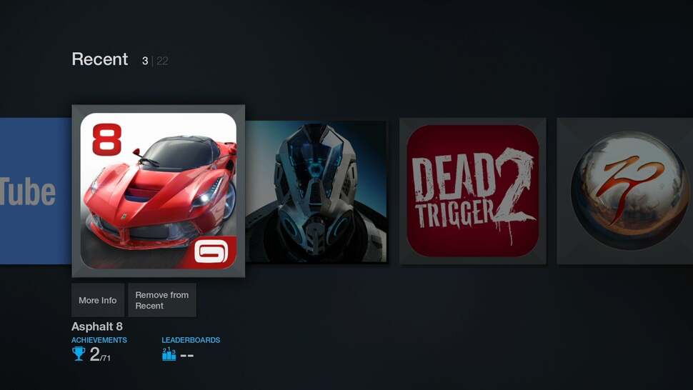 The OS is very reminiscent of its tablet incarnations, with movies, TV, apps and games all divided by a slick front-end menu. With no touchscreen interface to hand though, navigation is less intuitive when tapping the four-way controls at the centre of the supplied Bluetooth remote. Holding right to gradually scroll through a movie selection, for example, is a more long-winded, plodding affair than a sharp flick on a smartphone would have been. It's clear this UI needs a refresh in the move from tablets to set-top box, and this is especially evident when entering text.