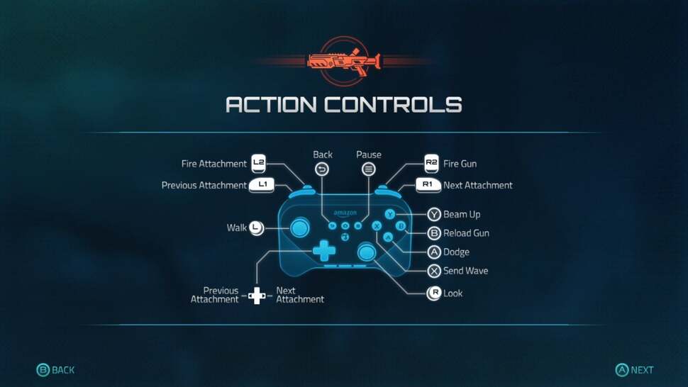 The Amazon Fire TV gamepad, meanwhile, is a must if you want to experience the full breadth of the console's game catalogue (though we can confirm a wired 360 works just as well). It uses the 360 pad as a starting point for control layout, even down to the lettering on the face buttons, and makes use of matte plastics to produce a very solid feel overall. The shortcomings in polish amount to a sponginess in the d-pad, where the limited travel offers no real tactile feedback, and also an audible twang to the springs once its triggers are released. Ergonomically, the mould of its handles doesn't sit quite as comfortably in the palms as the 360 pad's - reminding us a lot of the OnLive pad's grip. Even so, despite a rather agricultural appearance, Amazon's effort sits among the better attempts at replicating a general design that has been continually fine-tuned by Microsoft and Sony.