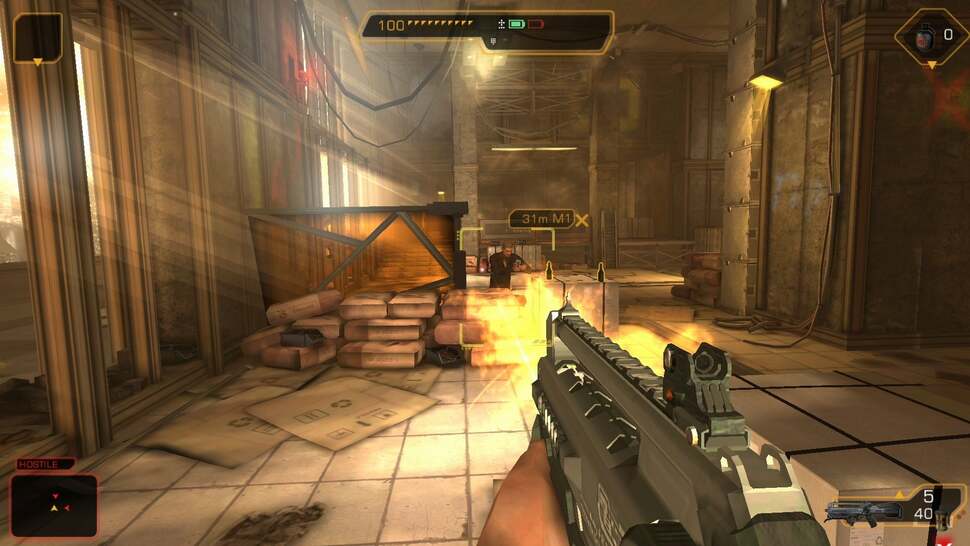 Next up is Deus Ex: The Fall, a full-fat 1080p game according to our tests, and one that is once again lacking a much-needed coat of AA. Gamepad support is hugely appreciated when it comes to strafing and aiming at the same time, but with performance lurking between 20-30fps it's hardly the smoothest experience. Even when we get a lock on 30fps during cut-scenes, there's still the same nasty frame-pacing issue to contend with - where we see 130ms frame-pacing lag in its roughest patches. The game is also marred by disjointed character animations, woeful voice-acting, and a sickly posterisation effect which causes obvious colour banding to textures.