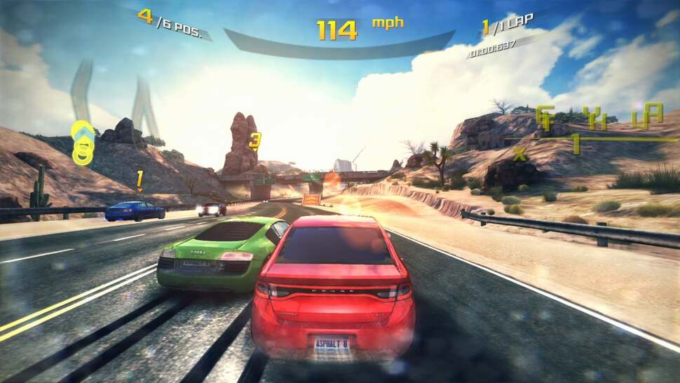 Another great looker is racer Asphalt 8. Bolstered by beautiful city designs, the game is somewhat let down by choppy performance - capped at 30fps with "very low" graphics selected, and even then suffering from dips to 25fps. This is rendering at a resolution of 1728x972 too (working out at 81 per cent of the pixel throughput of 1080p) where the lack of AA causes noticeable aliasing as you cruise through Tokyo's neon streets. This is softened by bloom lighting and post-processing effects added on high settings; the only issue here being that the game perpetually runs at 20fps on this graphics preset. Much like Dead Trigger 2 the frame-pacing issue rears its head here, creating the impression of a far lower frame-rate even when it's holding at the 30fps line.