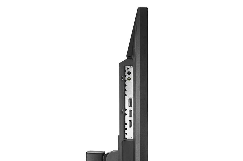 In terms of inputs, on the underside of the unit we have a DisplayPort 1.2 connection, allowing for 4K resolution at 60Hz without requiring any faux dual-monitor configurations in Windows or the GPU control panel. Two HDMI ports are situated alongside, followed by a line in socket for audio input and another to attach a pair of headphones. All legacy connectors (DVI and VGA) have been dropped entirely and as such there's no analogue support.