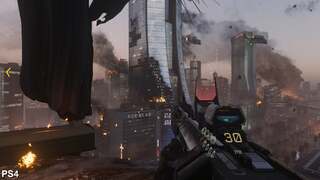 There are some anomalies during play too. The first is the semi-frequent stutter on both platforms, coinciding with the game's checkpoint system. This causes a brief hiccup to play every time the game's auto-save kicks in, which unfortunately for Call of Duty, tends to be at the end of each hallway. Towards the end of our video, you'll also notice momentary dips to 30fps during an on-rails segment. This affects both PS4 and Xbox One as part of a slow-motion effect while jumping between vehicles. It's an anomaly, thankfully, and doesn't represent general gameplay.