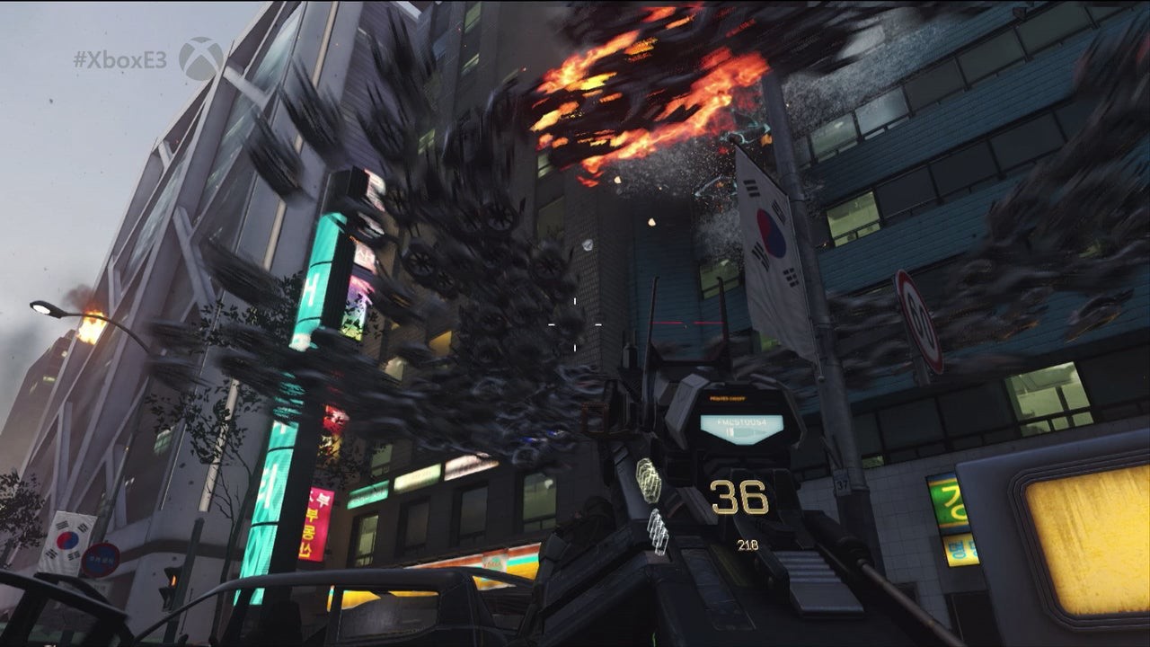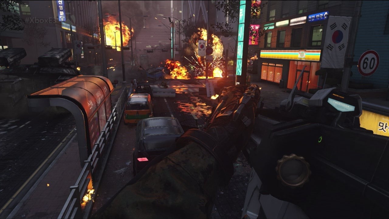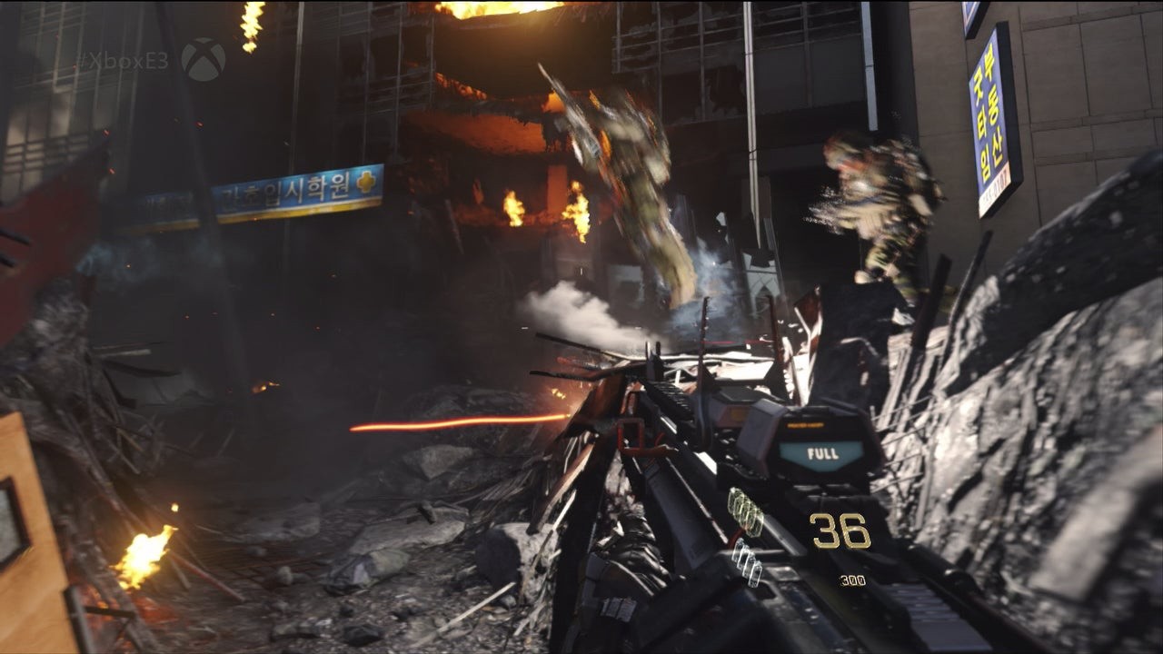 At Seoul's hectic, war-torn city centre we see the battle isn't just fixated on our hero, Mitchell. Giant mechs trundle across his path and torpedo missiles rip through its skyscrapers; it's scripted chaos with little of the emergent sandbox gameplay enjoyed in shooters like Battlefield 4 - but even so, it dictates the surrounding action in the most appetising way possible. At least based on the demo slice shown, the linear Call of Duty template is being adhered to here for good reason.