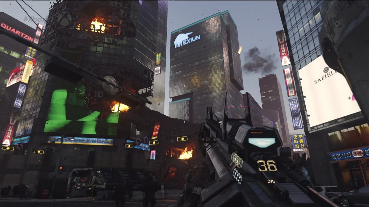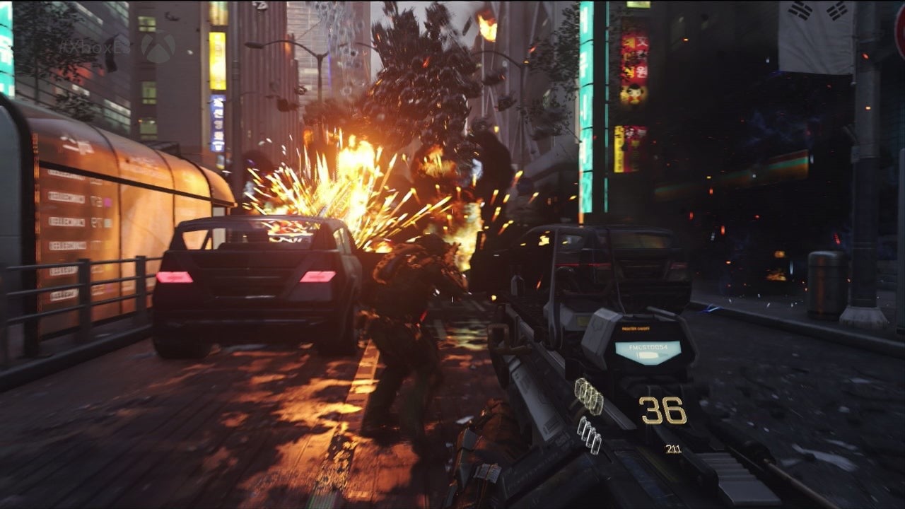 Focusing on the E3 reveal's Induction mission, set to the backdrop of a besieged Seoul, we can once again verify a resolution boost over Ghosts. Exact metrics are hard to pin down based on our media, but it remains in the region of the initial 1568x882 measurements we gleaned from the reveal trailer, with the pixel ratios ruling out anything higher than 1600x900. So for Xbox One, we're still looking at a minimum 50 per cent jump in pixel throughput over last year's 1280x720 return. Indeed, the higher base image quality ultimately puts less responsibility on post-processing to cater for aliased edges. However, based on the performance profile of the non-final E3 build, such fidelity comes at a price.