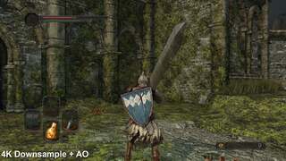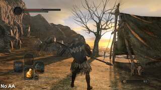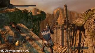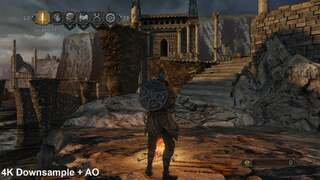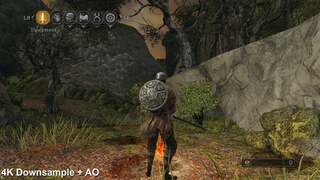 There's no sign of From Software reverting the PC version's lighting model and textures back to its alluring alpha build, but we do get a hefty graphics menu. Among the choices we have are quality options for textures, shadows, effects, anisotropic filtering, water shaders and character model detail. On top of that, we get toggles for motion blur, screen-space ambient occlusion (SSAO) and depth of field. The anti-aliasing method of choice is FXAA, with no official means of enabling more taxing post-process techniques like SMAA in-game.