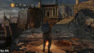 But this upgrade doesn't apply across the entirety of Drangleic. Facing the larger Majula area shows only minor bumps in texture quality, using familiar console assets running at a higher resolution. In the end, anisotropic texture filtering has a bigger impact here, lifting a veil that blurs over the floors on PS3 at near distance, and more so for the 360 version, which lacks anisotropic filtering entirely. The PC's highest filtering setting aces both consoles, with floor details still popping out on the horizon, while the lowest, blurriest implementation is a direct match for that used on Sony's console. Removing filtering altogether, meanwhile, generates results that are identical to 360, causing unwanted noise artefacts across textures just a few steps ahead.