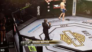 The use of motion blur, depth of field and fairly low contrast environments clearly helps deliver the best possible image quality. However, these effects also increase the ferocity of combat in the octagonal arena, particularly when delivering more elaborate moves and combos as you aim for a quick knockout. Here the presentation in UFC shares much in common with Fight Night Champion, although the use of post-processing isn't quite so heavy-handed, leading to a better balance between a gritty aesthetic and a cleaner, televised style. The downside is that some of these changes make the fights appear less brutal and hard-hitting than the last Fight Night game. This mainly comes across when powerful attacks aren't followed by a suitably audible thud as they impact forcefully with your opponent.