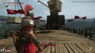 Access to a cut-down version of the game so close to release is admittedly a touch frustrating. We don't know whether some scenes are final or not - and there are some oddities present in the build we tested. For example, the fire effect seen in the palace siege when Marius is in command of a mammoth crossbow is very poorly animated in our build: different elements of the fire each flicker in turn on a 15fps refresh, looking very odd indeed. Surely that would have been fixed in a final QA pass? Regardless, we look forward to finding out.