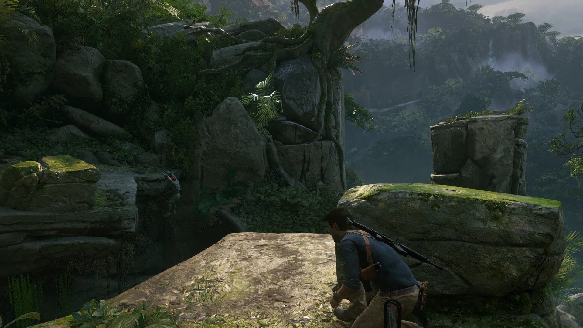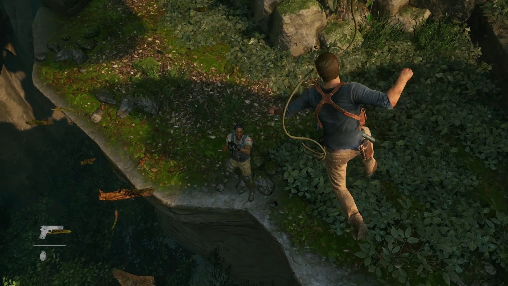 Moving on, as a globetrotting adventure, we're certainly curious to see what other sort of locales the team has in store for us and how that translates into new materials throughout the game. At least this cliff-side level allows for some new and improved gameplay elements: the added traversal options seem to make navigating the environment more interesting and dynamic than anything in the series to date. With the addition of new climbing gear, reminiscent of 2013's Tomb Raider, Drake now has more options available for environment navigation. Rock faces are less defined by specific grab points and allow for more freeform climbing, while the new rope-swinging mechanics look like a lot of fun. Impressively, the rope deformation appears to be of exceptionally high quality - almost as if it were using tessellation of some sort.