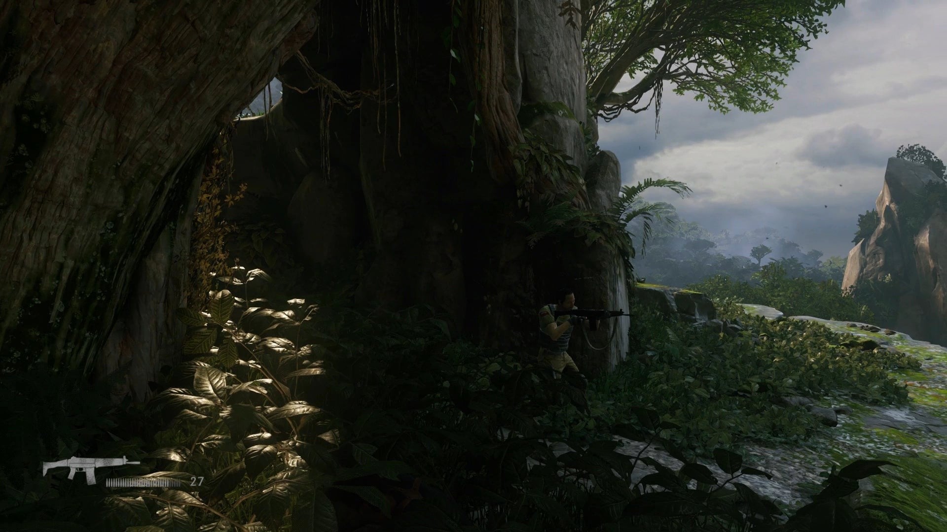 A number of other details help to create a more cohesive world. In one instance, we spotted smoke particles from a grenade properly receiving shadows from the world geometry. Particle shadows tend to be a rather demanding effect but really add to the realism when used properly. Alongside that, the debris kicked up by this explosion seems to bounce around the scene in a more realistic fashion. Drake's wetness properties also appear to be of higher precision this time, while dirt and mud more realistically sticks to the model in the appropriate spot. The only really disappointing omission here has to be the lack of per-object motion blur. This has been a staple of Naughty Dog's visual design since Uncharted 2 (though it was added in a patch to Uncharted 3 due to an omission on the gold master) so it's disappointing to see it absent in this sequence. Of course, it's still early and could be added at a later date, but without it, things don't quite look as nice in motion as we'd like.