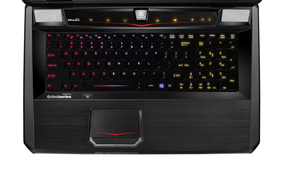 Physically, it's a thick and sturdy piece of kit with a brushed aluminium finish. It measures in at 55mm tall at its hinge, with a SteelSeries chiclet keyboard filling the lower half (pepped up with multi-colour backlighting). Its push for depth is a wise move that allows better ventilation from the back and sides, and also a comprehensive input range to its rim. To count, there are single HDMI, VGA and DisplayPort connections that in concert allow for up to three monitors at once. Turning the corner, there are two USB 2.0 ports, and appropriately three USB 3.0 inputs, a Blu-ray drive, and SD slot, and a line of audio connectors. Build quality is superb all-round, although as with other laptops in this 17-inch bracket, the keyboard features a very slight flex towards its centre.