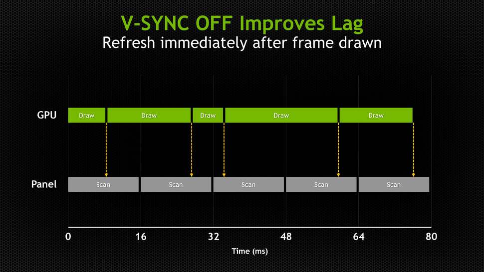 With that in mind, there's no more judder induced by your PC waiting for the screen to begin its next refresh, and no more rendering of the image when the screen is in the process of displaying the next frame (the cause of tearing). It's the biggest change to the interface between games machine and display since progressive scan became the standard.