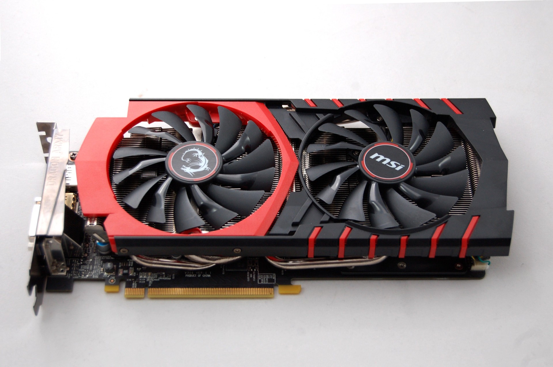 We would have loved to review the GTX 970 in concert with its bigger brother last week, but curiously Nvidia decided not to sample it to reviewers, instead leaving it to third party board-makers to supply the press. MSI came to the rescue in our case, providing us with its new card based on its TwinFrozr 5 design, impressing us with its ability to stay whisper-quiet even when we over-volted and overclocked this card to its limits. The three DisplayPort outputs of the reference card are dispensed with in favour of the traditional dual-DVI/HDMI/DisplayPort arrangement, while curiously the six-pin/six-pin power inputs are replaced with an eight-pin/six-pin set-up. MSI's custom cooler has always impressed - the R9 290 we used for CrossFire testing in our R9 295X2 piece was also a peach.