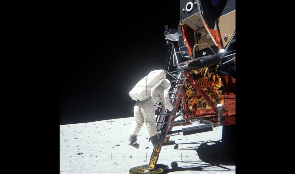 Check out the picture above. Click on it, if you will, for a closer look. Of course, you've probably seen it before - it's an image of Buzz Aldrin descending from the Apollo 11 lunar module, taken by the first man to walk on the Moon, Neil Armstrong. Only it isn't actually a photo, it's a real-time render generated using VXGI, Nvidia's new voxel-based global illumination system. But for reference, the actual Armstrong image is here.
