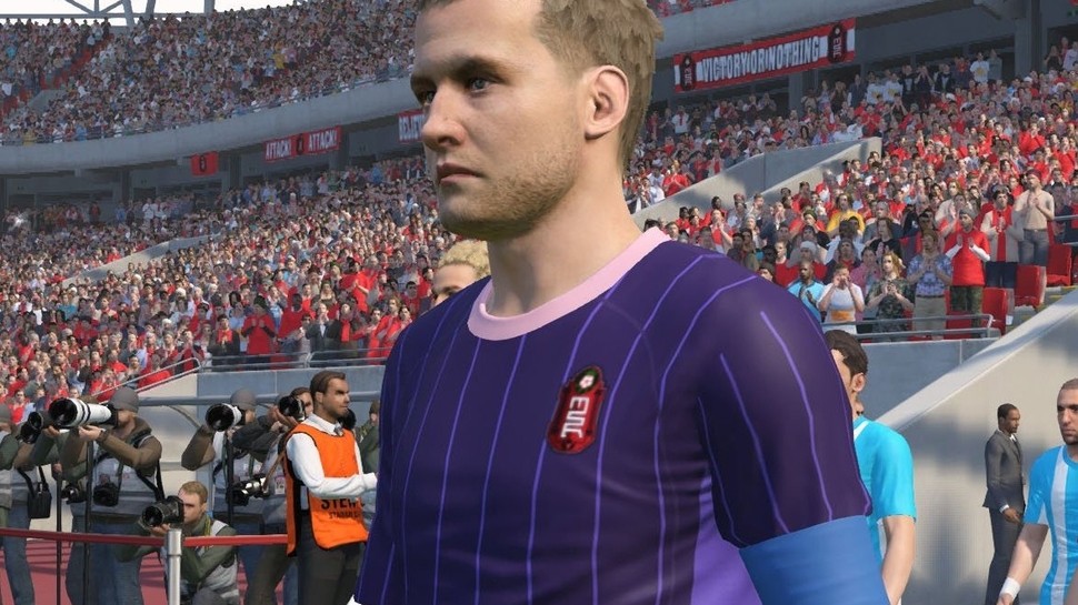 Unfortunately, this is not always a selling point. Though players feature self-shadowing while walking through stadium entrances, the lighting itself is too heavy-handed on both consoles. Without any effective ambient occlusion, the pitch takes on a very clinical look, where goalposts, players, and even the crowds lack the necessary shading to simulate spatial depth. On that point, the 3D crowds lining the stadium stick out especially for another reason, with their use of a sub-30fps refresh standing at odds with the main action's full 60Hz.