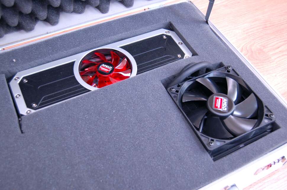 In terms of build quality, this is an enormous departure from AMD's recent, somewhat lacking reference designs - it features an anodised aluminium shroud, quality heatsink and decent fan, and even the back of the board itself is hard, durable metal. Red LEDs highlight the cooling and the Radeon branding. This may not quite match the aesthetics of Nvidia's top-end products, but it looks the part and the cooling performance speaks for itself.
