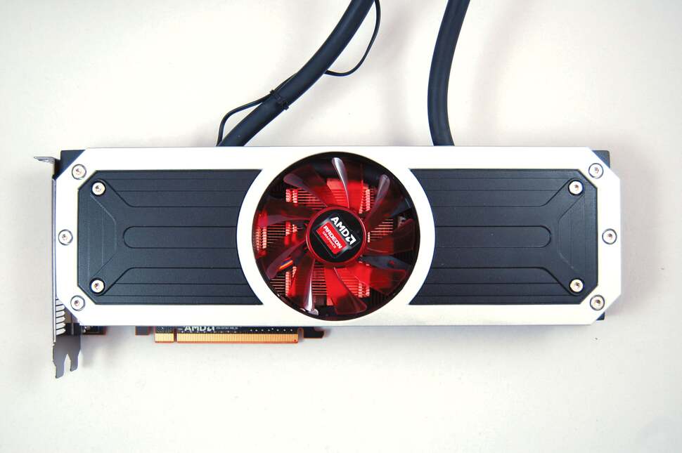 Taking a look at the card itself reveals how this was done. In addition to the standard heatsink and fan, the 295X2 includes a closed-loop water-cooling system provided by specialist Asetek. Twin pipes emerge from the shroud, linking up to a radiator arrangement that you attach to a 120mm fan placement on your chassis. Gone are the days of simply slotting in the GPU and attaching some power cables - this requires a touch more effort. However, the end result is a cool GPU and a card that's actually quieter than the R9 290X in its performance-sapping 'quiet' mode. In our case, the power supply fan was actually louder - perhaps not surprising, bearing in mind that AMD recommends a 1000W PSU.