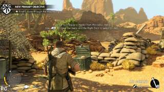 The core graphical make up of the game also holds up from a technical perspective with the North African desert and surrounding locations allowing for the action to be set in distinctly more organic environments than Sniper Elite V2. Man-made trenches and buildings are layered across a land filled with rocky canyons, sand dunes and oases that feature trees and foliage in which to carefully sneak up on many unsuspecting foes. A combination of particle effects and mist are also used to help bring the arid desert landscape to life and this is backed up well with a variety of sound effects, ranging from crickets chirping in the undergrowth and mortar fire in the background to the sound of soldiers occasionally conversing in the distance.