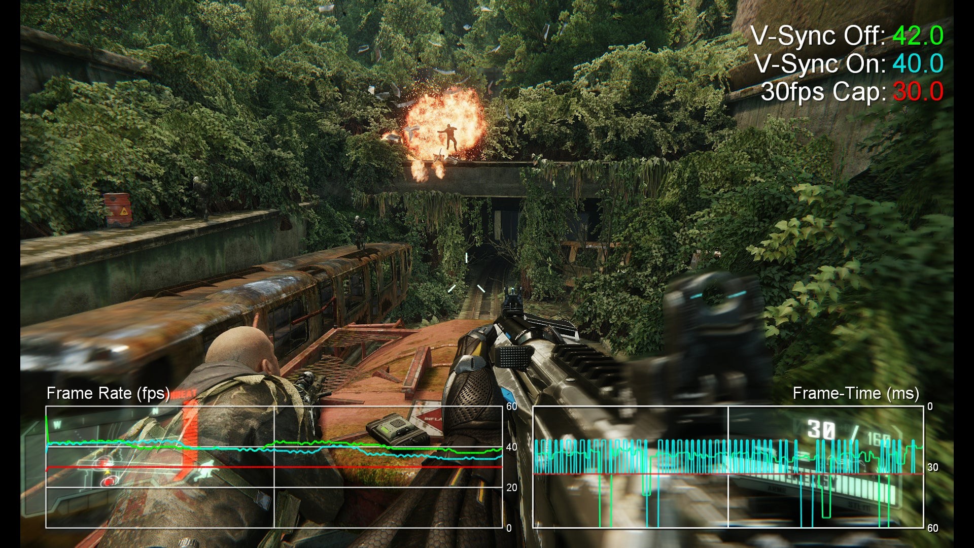 Most PC games only have one frame-rate limiter available: turning v-sync on. This attempts to synchronise gameplay with the refresh rate of the display, in most cases limiting your system to 60fps. Out of the box, the only alternative is to disengage v-sync, allowing the game to run completely unlocked. There's no synchronisation with the display, meaning that frames are delivered as soon as the GPU finishes rendering them. This usually takes place as the screen is still refreshing, producing screen-tear, and a wholly inconsistent performance profile - input lag and visual feedback vary from moment to moment, often producing a sub-par experience.