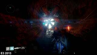 Using a 1080p feed of last year's Sony E3 conference, we play through Destiny's opening stage on PS4 to match the demonstration areas beat-for-beat. This drops us on the ruined outskirts of Old Russia, with the mission leading us through the dark interiors of the Cosmodrome wall. Bungie's initial showing adds extra elements to up the ante for a public demonstration, of course - such as an Archon Slayer boss fight and extra enemy encounters - but the settings remain broadly the same.