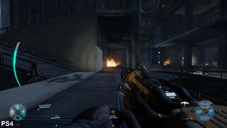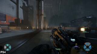 The smooth look present throughout most of Evolve extends to both consoles, although fine details appear a little fuzzier on the Xbox One game, suggesting an upscaled framebuffer. Pixel counting puts the Xbox One version at 900p while PS4 owners are given a native 1080p presentation. The drop in pixel precision can be seen on smaller elements of the scene, such as wires, railings, and small pipe work, but thankfully the low contrast nature of the game and use of accomplished anti-aliasing helps to partially gloss over the effects of the upscaling during gameplay in areas where these elements aren't particularly abundant. Both consoles operate with an AA solution that closely resembles the PC version running with SMAA 1X enabled, but free of any temporal ghosting.