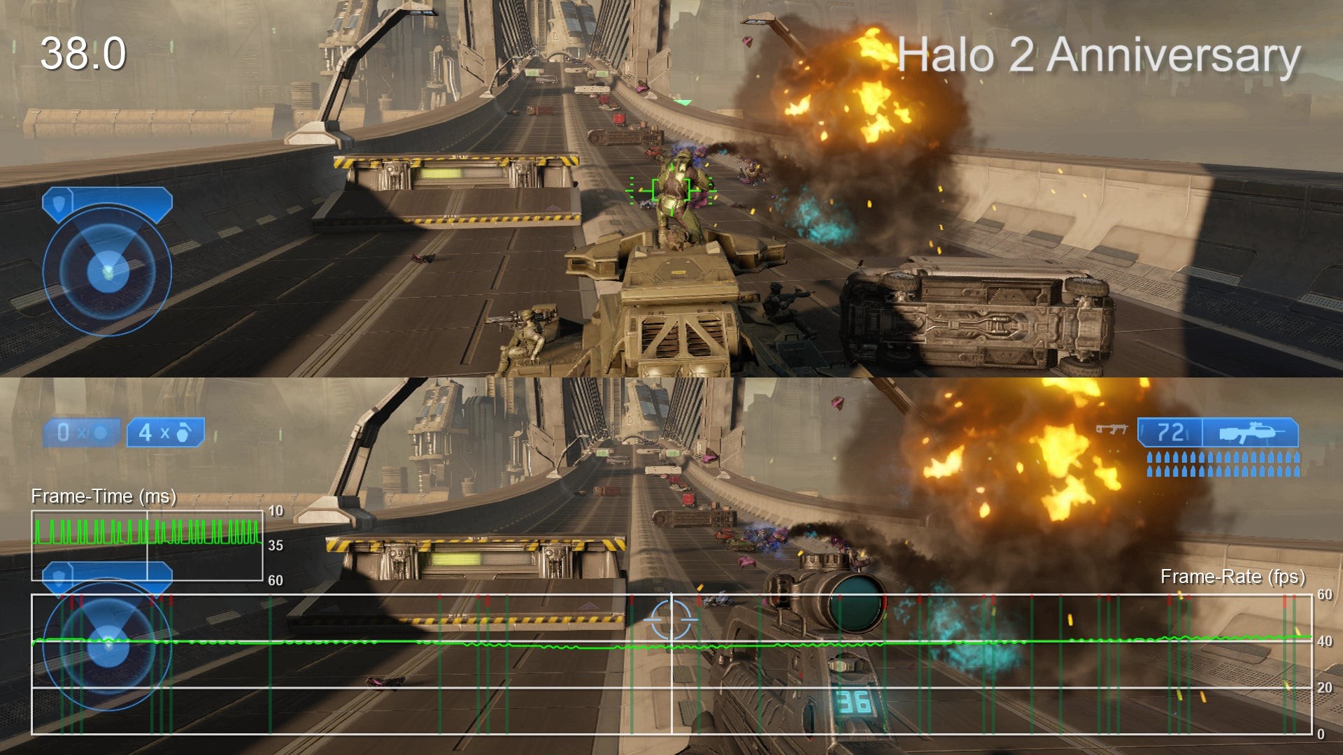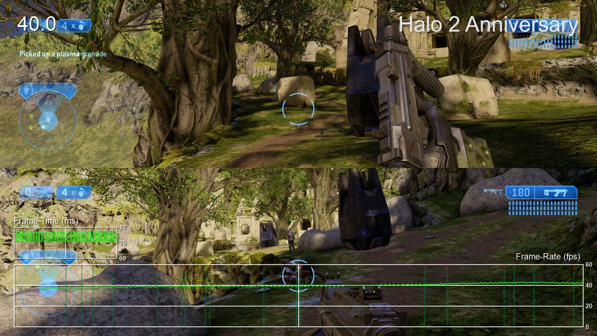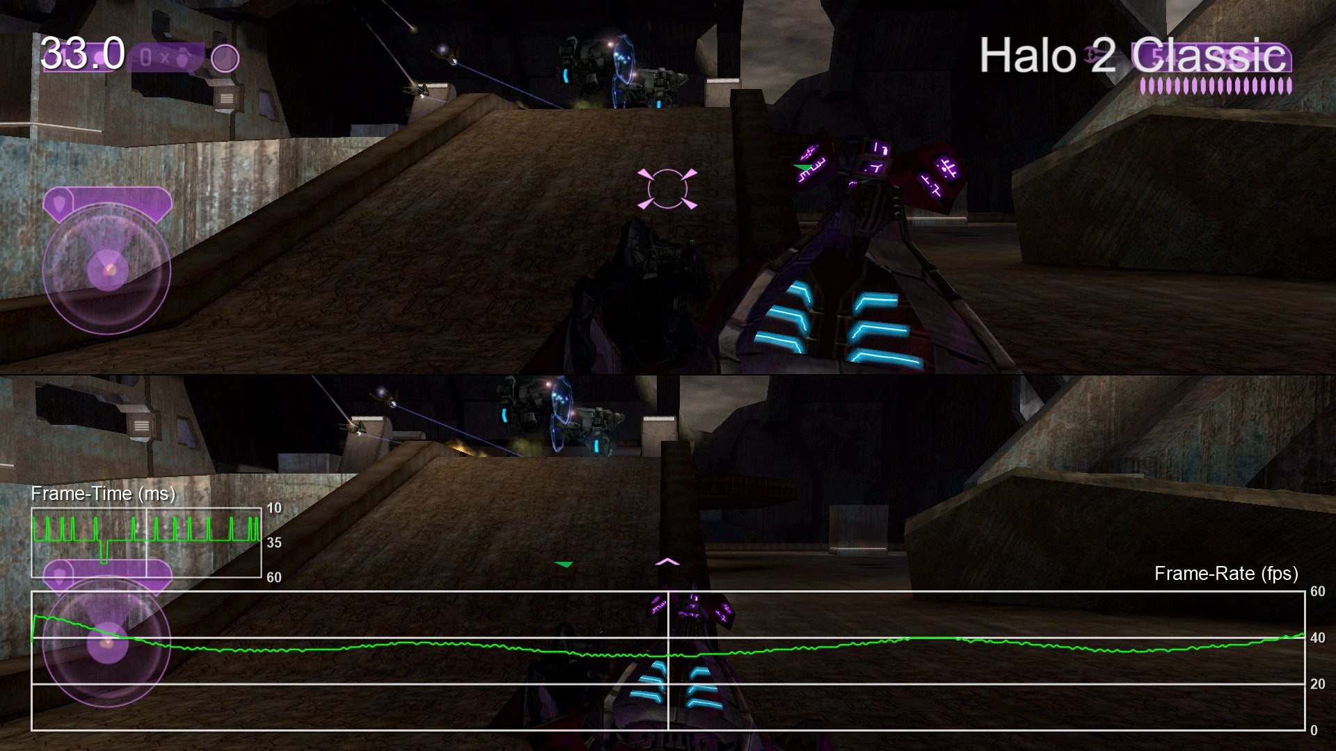 - As with Halo CE, the split-screen frame-rate in Halo 2 is rather poor. In Anniversary mode we found performance improved on average compared to Halo CE but it never really feels particularly smooth. Unfortunately, the classic mode also suffers from performance issues this time meaning that there's no way to enjoy a full 60fps split-screen mode with Halo 2. It should also be noted that, while the field of view is wider than the original Xbox game, it still feels somewhat narrow compared to Halo CE Anniversary.