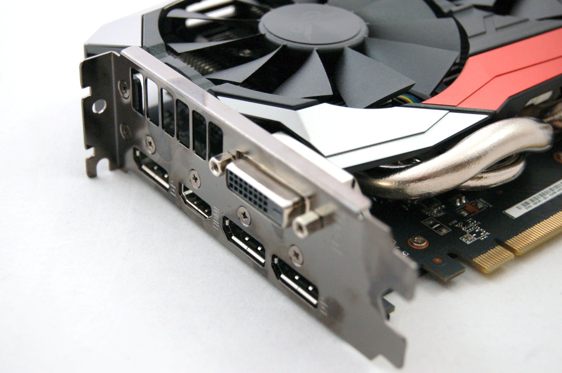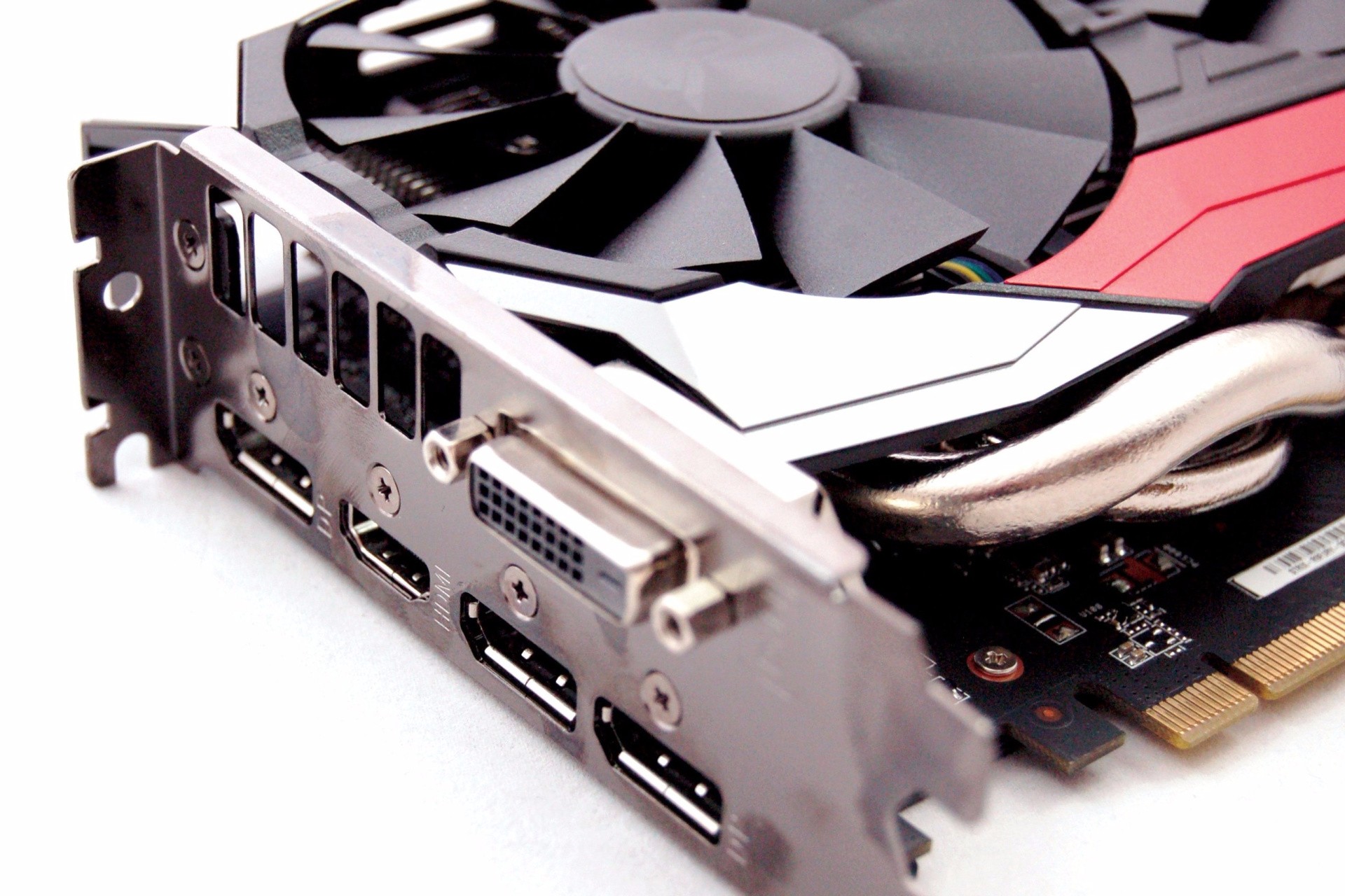 Just like its more powerful sibling, the R9 Fury requires two eight-pin power supply inputs, but video outputs are actually improved over the Fury X - the three DisplayPorts and HDMI are retained, but we also get the dual-link DVI interface removed from the top-tier Fiji offering. Most monitors ship with all three types of input these days, so losing DVI on the Fury X wasn't a deal-breaker, but more options are always very welcome.