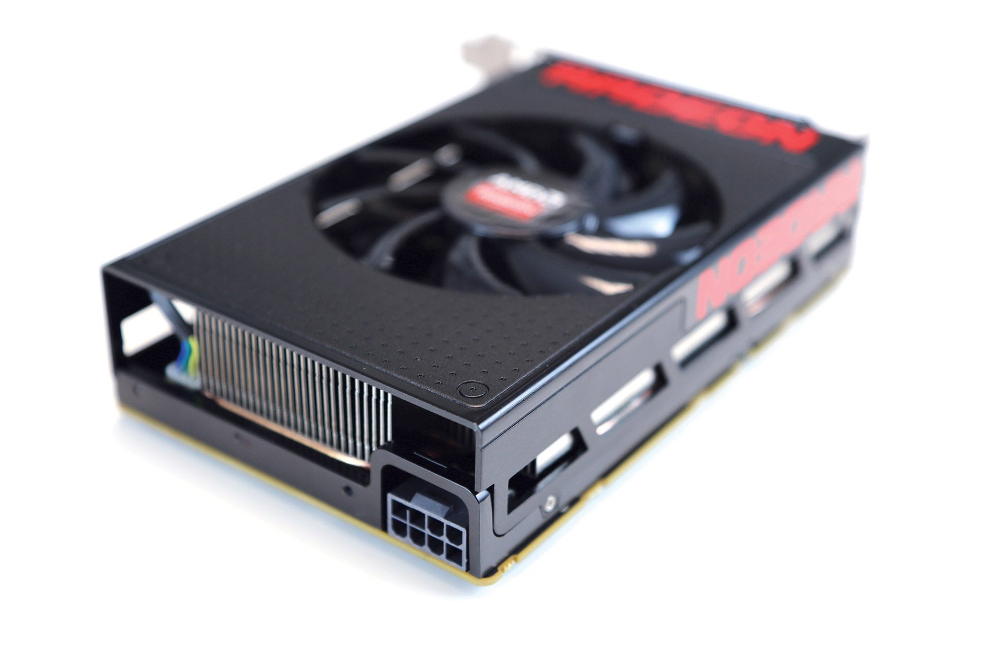 Physically, the card has many similarities with the top-end Fury X, specifically in terms of its video outputs. We get three DisplayPorts along with one HDMI port (just like Fury X, it's unfortunately just HDMI 1.4a, restricting us to 30Hz at 4K - not good for the new wave of 4K UHD TVs). However, the reduction in operating power to 175W means that power input configuration changes - the two eight-pin PSU inputs on the Fury X are reduced to just one on the Nano.