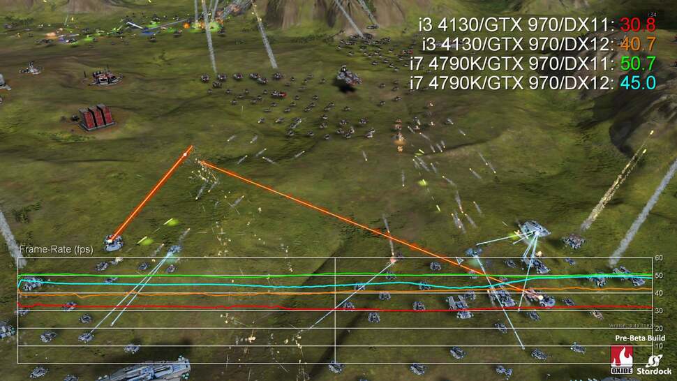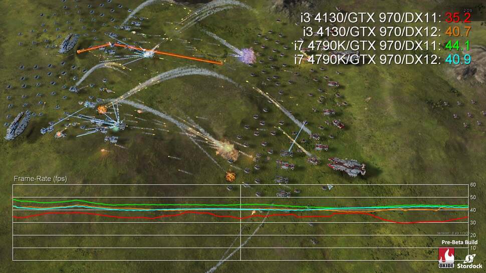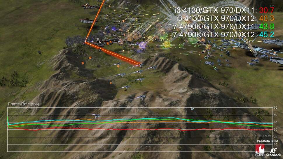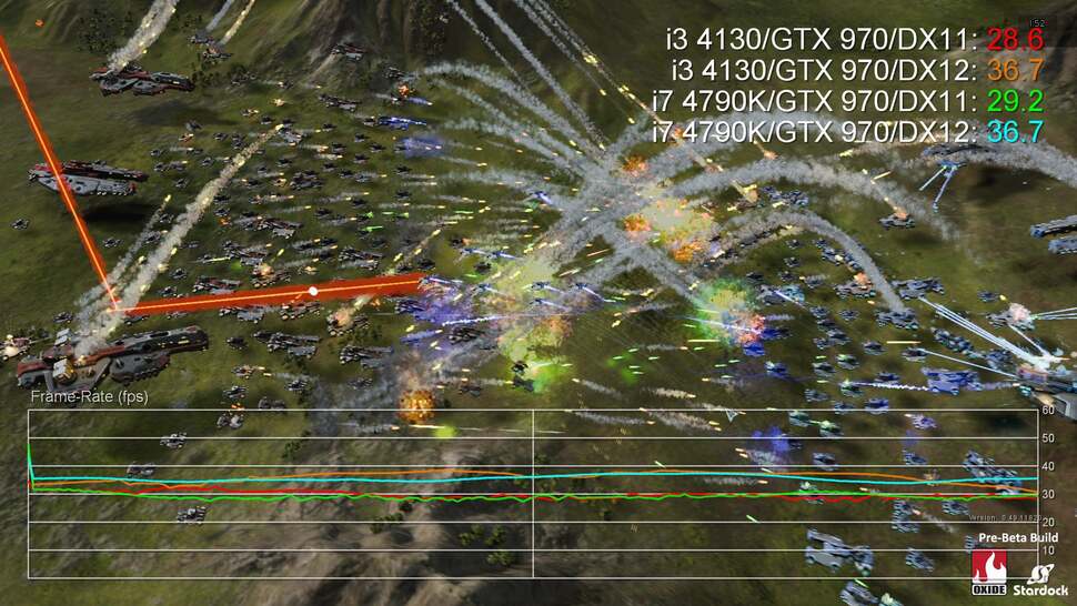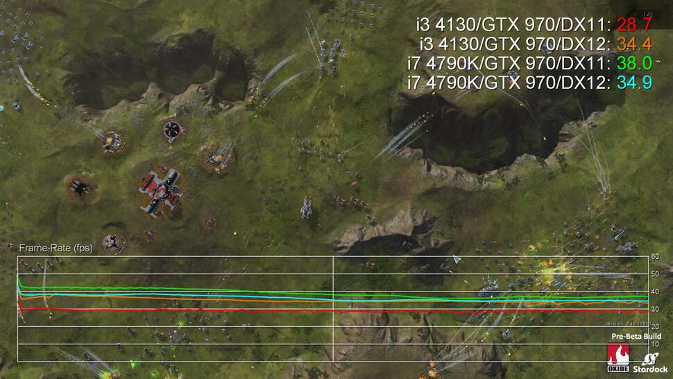 "It should not be considered that because the game is not yet publicly out, it's not a legitimate test," Oxide's Dan Baker said. "While there are still optimisations to be had, the Ashes of the Singularity in its pre-beta stage is as or more optimised as most released games. What's the point of optimising code six months after a title is released, after all? Certainly, things will change a bit until release. But PC games with digital updates are always changing, we certainly won't hold back from making big changes post launch if we feel it makes the game better!"