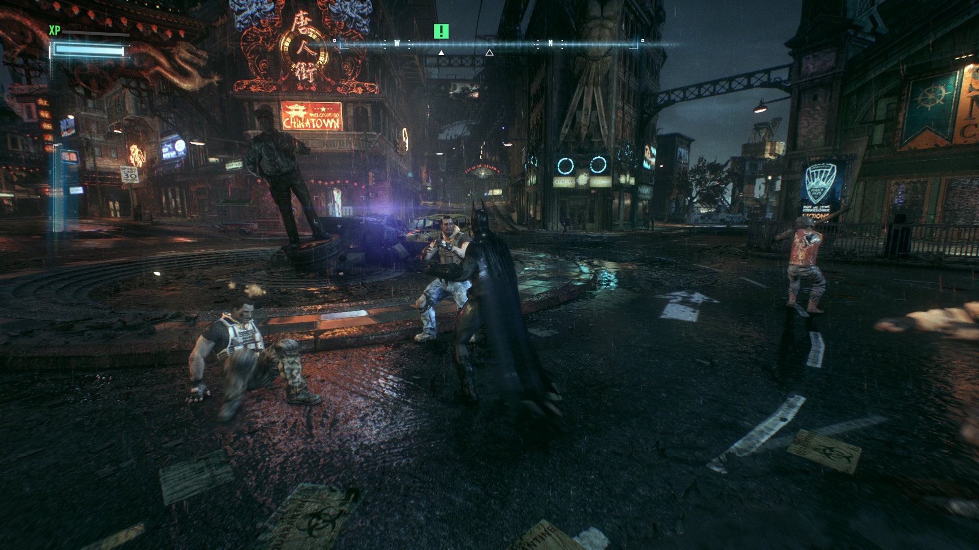At a street level, Gotham is also amply populated. Crowd density is far from Grand Theft Auto 5's level (the city is mostly evacuated after all), but its roads are nevertheless alive with cops and robbers in chase, giving the city a sense of purpose outside of Batman's missions. Roaming tanks and gangs fill the rest of the space, often clubbing together in greater number than Arkham City's smaller pockets of enemies - again, the reported number is five times the NPC count to befit current-gen specs.