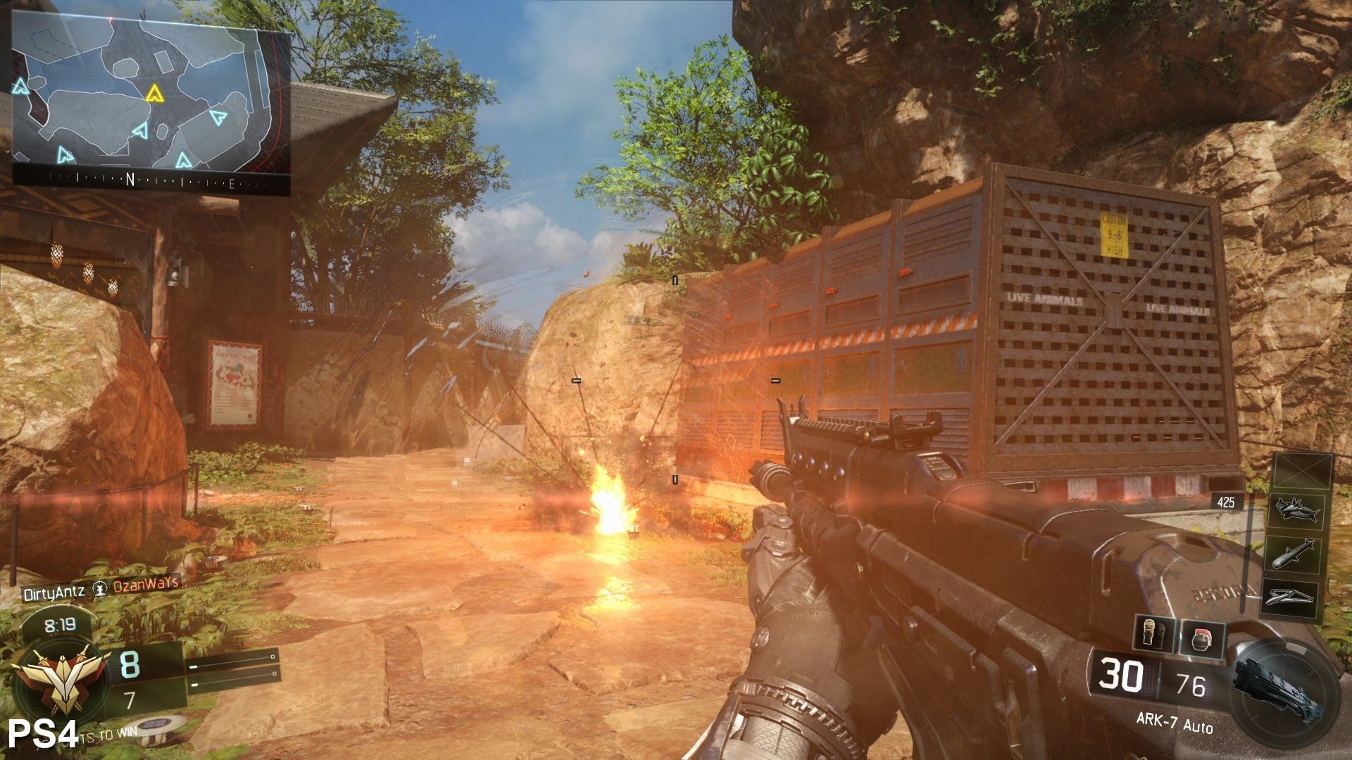 In terms of performance, the Black Ops 3 beta delivers a mostly solid 60fps experience in multiplayer - albeit with visible drops in frame-rate during more bombastic segments of gameplay with lows of around 55fps manifesting on rare occasions. Controls are otherwise crisp and consistent for gameplay, and outside of an occasional moment of judder, these drops in performance often go by unnoticed.