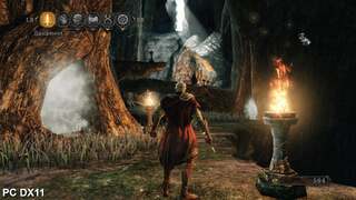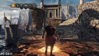Above and beyond this, the rest of Drangleic remains the same, in terms of core tech. The draw distances are like-for-like between DirectX 9 and 11, though in our video comparison with PS4 below it's apparent that the console versions use more restrictive LOD parameters. This produces a little extra pop-in across bricks on walls, and also to rock details around Things Betwixt. It's a minor artifact though, and these are tiny visual points that swap in subtly enough on all platforms.