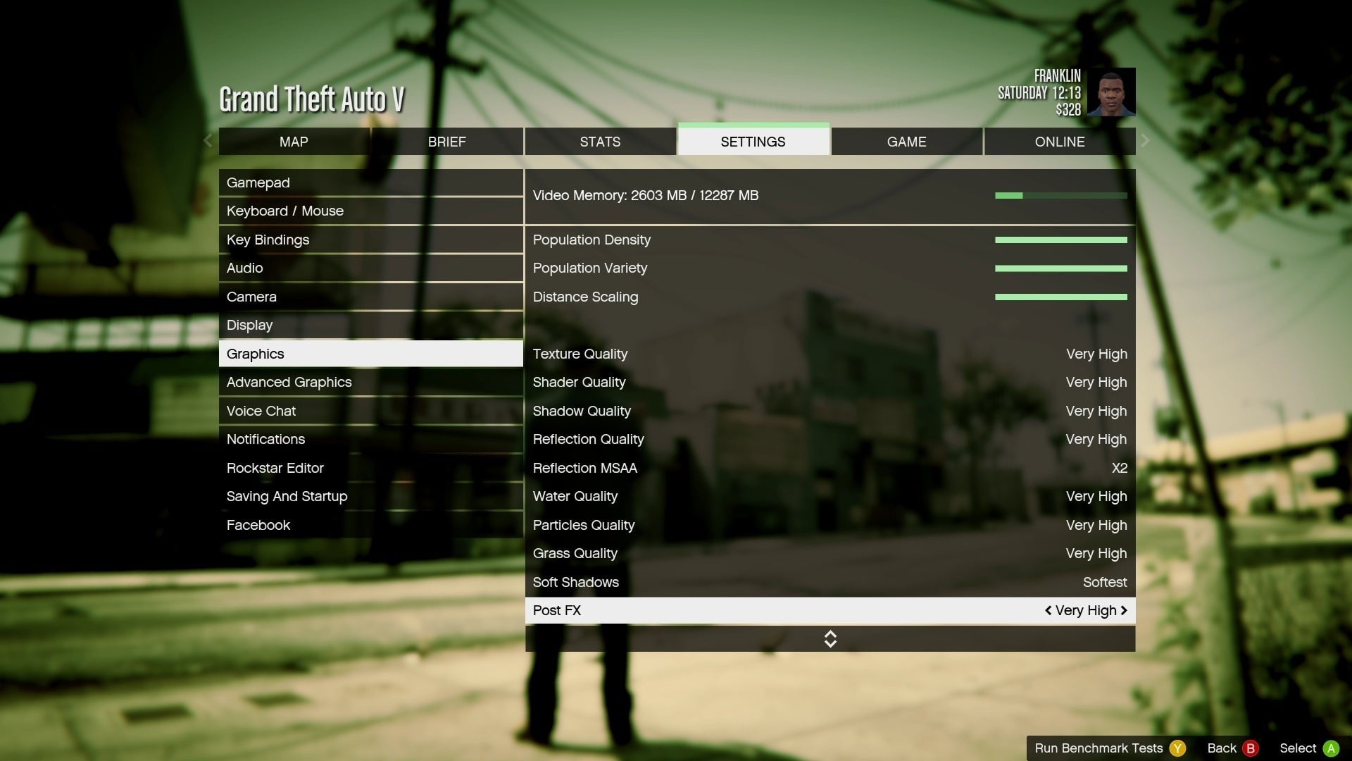 AMD's 15.4 beta drivers are crucial when playing GTA 5 too. Moving to the R9 290, performance stuttered heavily on the standard Omega 14.12 drivers at first, and as much as 20fps is gained in benchmark tests by updating. With this set, 60fps proves easy for this 290 to hold on an i7 4790K machine, even in tests at very high settings, 2x MSAA and sliders at 100 per cent. Ultra quality post effects are also approachable without a serious penalty. Locking down 60fps at 1080p is sure-fire with the right setting balance on this GPU; an amazing return given its £220 price-tag, and on visual presets beyond the PS4's to boot.