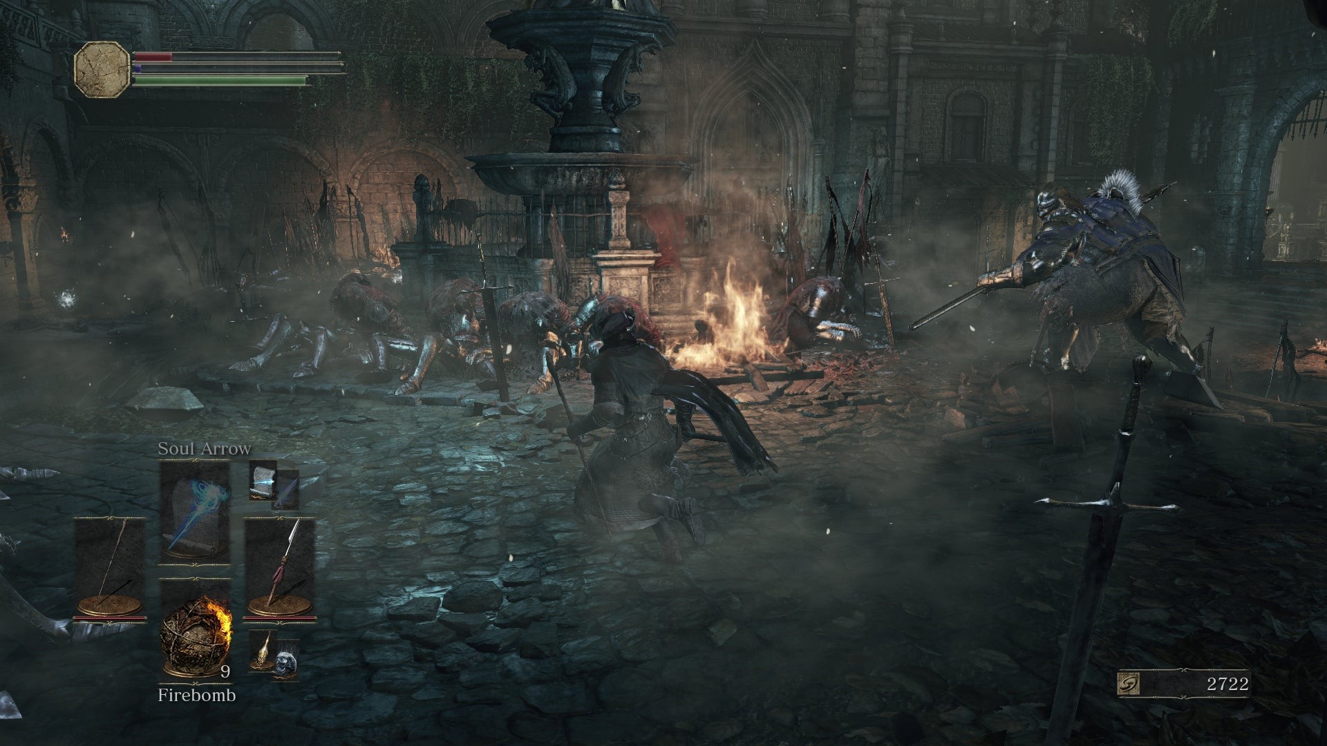 In battle, transparency effects like fire, and even heavy splatters of blood transfer straight from Bloodborne at full resolution. There's no paring back on the quality here, and particle effects in particular look superb when swords clash with shields and masonry. Crashing through objects too - using the Havok physics engine - also creates huge billows of dust, and this effect in particular stands out compared to earlier the weaker puffs of earlier Souls games.